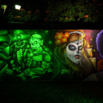 Durante el festival, fue importante la participación de los jóvenes, quienes además de involucrarse en el montaje de altares, presentaron elaborados grafitis relativos a estas fechas.