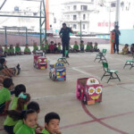 En ambas instituciones educativas, participaron 430 niñas y niños, con quienes se interactuó con el apoyo de botargas de la Policía de Tránsito y payasitos incorporados a la dependencia.