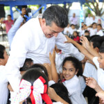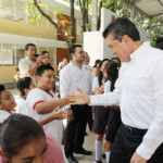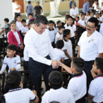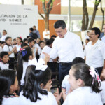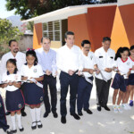 Durante el recorrido del gobernador por este plantel, las y los alumnos con gran entusiasmo estrecharon su mano, se tomaron fotografías con él y externaron su felicidad por contar ahora con espacios más dignos y bonitos en su escuela.