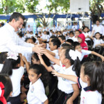 “Les pido que cuiden de su escuela y que pongan todo su esfuerzo y dedicación a sus estudios; también quiero pedirles que obedezcan a sus madres y padres, que respeten a sus docentes y aprovechen todo lo que les enseñan en las aulas. Recuerden que las niñas y los niños tienen dos compromisos: estudiar y jugar”, manifestó.