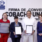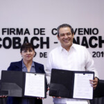 La directora general del Colegio de Bachilleres de Chiapas (Cobach), Nancy Leticia Hernández Reyes, y el rector de la Universidad Autónoma de Chiapas (Unach), Carlos Natarén Nandayapa, firmaron el convenio de colaboración y fortalecimiento académico en materia de capacitación, cobertura y servicios a favor de jóvenes y docentes cobachenses.