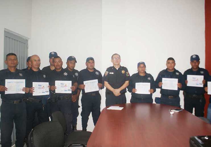 Integrantes de la policía municipal recibió un curso de educación vial impartida por el Lic. Juan Carlos Velazco Palacios Delegado de Tránsito Municipal, con la finalidad de brindar el conocimiento total sobre los señalamientos viales.