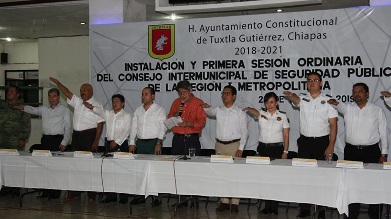 Con la presencia del Fiscal General del Estado, Jorge Luis Llaven Abarca, y el Secretario Ejecutivo del Sistema Estatal de Seguridad Pública, Sergio Alejandro Aguilar Rivera se llevó a cabo la Primera Sesión Ordinaria del Consejo Intermunicipal de Seguridad Pública 2018-2021 de la Región I Metropolitana, en donde se designó al alcalde de Tuxtla Gutiérrez, Carlos Morales Vázquez, como presidente de este organismo por el periodo de un año, de conformidad con el artículo 23, fracción I, de la Ley estatal de Seguridad Pública, que establece que el presidente de este organismo será nombrado de entre los presidentes municipales que conforman este organismo.