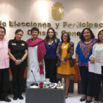 Reunidas en la sala de sesiones del IEPC, Gabriela Zepeda Soto, Sandra de los Santos, Holly Matus y Maximiliana Sántiz, participaron en el conversatorio “Experiencias compartidas en la brecha de la desigualdad de género”. Moderó la mesa redonda Laura León Carballo, consejera electoral del IEPC.