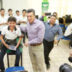 Con gran orgullo, Hernández Reyes presentó a jóvenes que han logrado poner en alto al Colegio de Bachilleres de Chiapas, tal es el caso de Leonardo Daniel Espinosa Hernández, quien logró medalla de oro en la Olimpiada Nacional de Matemáticas, obtuvo una beca del Conacyt para estudios de licenciatura y representará a México en el certamen internacional de matemáticas en Francia.