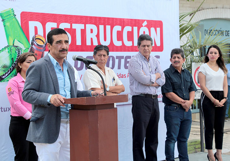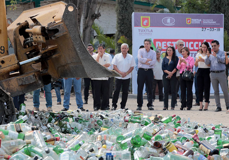 Con la finalidad de evitar riesgos de consumir bebidas adulteradas y para impedir el abuso en el consumo de alcohol, el gobierno de la ciudad, encabezado por el presidente municipal, Carlos Morales Vázquez, procedió a la destrucción de 8 mil botellas de licor, recolectado en diversos establecimientos con el apoyo de cámaras empresariales y la iniciativa privada.