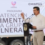 Al dar el banderazo de salida a los seis Programas Alimentarios del Gobierno del Estado, el gobernador Rutilio Escandón Cadenas destacó el respaldo del presidente Andrés Manuel López Obrador en las acciones que permitan garantizar una alimentación nutritiva y de calidad a los grupos vulnerables de los municipios más pobres de Chiapas.