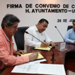 En este firma de convenio estuvieron presentes, Karla Burguete Torrestiana, Sindica municipal, Francisco Zorrilla Rabelo, Secretario General, Cristóbal Flores Pérez, Secretario de Desarrollo Social y Educación, Edelmira Marín Zenteno, Regidora y presidenta de la Comisión de Educación, Cultura y Recreación, así como personal académico de la UNICACH.