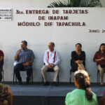 En la entrega de Tarjetas Inapam estuvo presente la coordinadora de Atención a Personas con Discapacidad y Adulto Mayor, Fabiola Méndez Pérez; la directora General del Sistema DIF Tapachula, Claudia Catalina Barrientos Pérez; entre otros funcionarios.