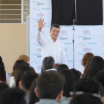 “La educación abre paso, nos da la oportunidad de avanzar, pero también nos da la libertad de realizar nuestros sueños. Y hay que soñar, jóvenes, hay que pensar en hacer realidad hasta lo que parece inalcanzable. Las utopías solamente insistiendo, caminando y esforzándonos se pueden concretar”, dijo a las y los estudiantes, a quienes exhortó a no desertar en su preparación académica y elegir una carrera que los haga felices y les permita aportar a la sociedad.
