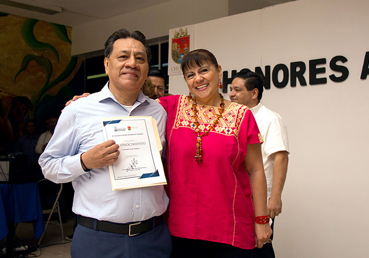 Hernández Reyes reconoció los años de trabajo, esfuerzo, dedicación y responsabilidad de Blanca Margarita Orduña Calcáneo, María Victoria Corzo Espinosa y Humberto Cortés Martínez, a quienes también resaltó por tantos años de trabajo entregados durante su servicio a esta institución.