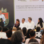 En el municipio de San Fernando, el gobernador Rutilio Escandón Cadenas puso en marcha la campaña de programas preventivos y entregó beneficios para fortalecer los servicios de salud, donde resaltó que la prioridad de la Federación y del Gobierno del Estado es reforzar la atención con medicamentos suficientes, equipamiento y personal médico y de enfermería.