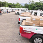 Al dar el banderazo de salida a las camionetas y camiones cargados de medicamentos, con