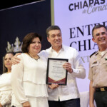 En tanto, la condecorada nacida en el estado de Sinaloa y chiapaneca distinguida gracias a su contribución al bienestar de las familias de la entidad, agradeció la distinción que el Gobierno del Estado le concede al portar esta medalla que, aseguró, preservará con orgullo y respeto cada día.