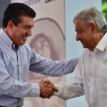 Posteriormente, el gobernador Rutilio Escandón Cadenas acompañó al presidente Andrés Manuel López Obrador a la asamblea ejidal de Sembrando Vida que se realizó en el municipio de Teapa, en el estado de Tabasco.