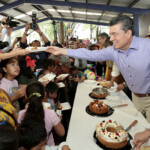 • El mandatario partió la tradicional Rosca de Reyes y entregó regalos a quienes asistieron al Centro de Convivencia Infantil
