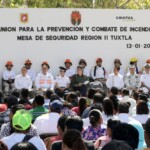 El fiscal general Jorge Luis Llaven Abarca acompañó al gobernador Rutilio Escandón Cadenas a la presentación de la Estrategia Regional para el Combate de Incendios de la Región II en Tuxtla Gutiérrez, en la cual reconoció el liderazgo del mandatario estatal para coordinar los tres niveles de gobierno con acciones de sensibilización, capacitación y atención oportuna en situaciones de riesgo en Chiapas.