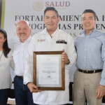 En este marco, Escandón Cadenas entregó insumos a programas jurisdiccionales de vectores y dio banderazo de salida a brigadas y vehículos nebulizadores para combatir el dengue, zika y chikungunya. Igualmente, los hospitales generales de Yajalón y de Palenque, los hospitales básicos comunitarios de Santo Domingo, Ocosingo, y de Salto de Agua, así como la Unidad Móvil “Dos Ríos”, recibieron dictámenes de Acreditación de Establecimientos y Servicios de Atención Médica.