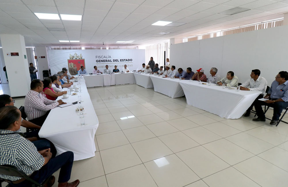 Acompañado por Jordán de Jesús Alegría Orantes, fiscal de Coordinación; Rodolfo Díaz Aguilar, fiscal de Combate al Abigeato y representantes del sector ganadero de la entidad, Llaven Abarca escuchó cada una de las inquietudes y propuestas de las y los ganaderos de las regiones Centro, Altos, Fronteriza, Frailesca, Norte, Selva, Sierra, Soconusco e Istmo Costa.