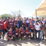 El Mandatario municipal hizo entrega del trofeo del primer lugar al equipo “Real Jardín” del ejido Abelardo, por consagrarse campeón en un duelo muy parejo, también se reconoce el camino de victorias que logró el equipo de Zapata.