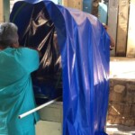 Mencionó que para está cápsula utilizaron lona azul, plástico PVC para las ventanas, armazón hecha con tubería de plástico para rotoplas, colchón de camilla, estructura metálica de camilla y guantes de nitrilo con estructura Iris para incubadora.