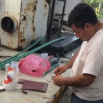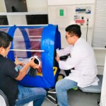 Para la fabricación de estas mascarillas se utiliza como material una hoja de acetato, una banda antiderrapante, elástico y grapas; en esta noble labor altruista también trabajan Noel Vazquez Pérez y Luis Alberto López Santizo, ambos de la brigada número 19 del Programa de Eliminación de Oncocercosis.