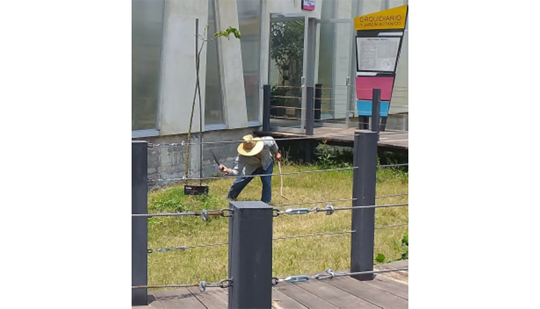 Asimismo, se hacen trabajos de limpieza de maleza, tanto en pastos externos como dentro del jardín botánico, así como de mantenimiento adecuado de los espejos de agua en los escenarios de cada uno de los ecosistemas que se representan dentro de dicho orquidiario.