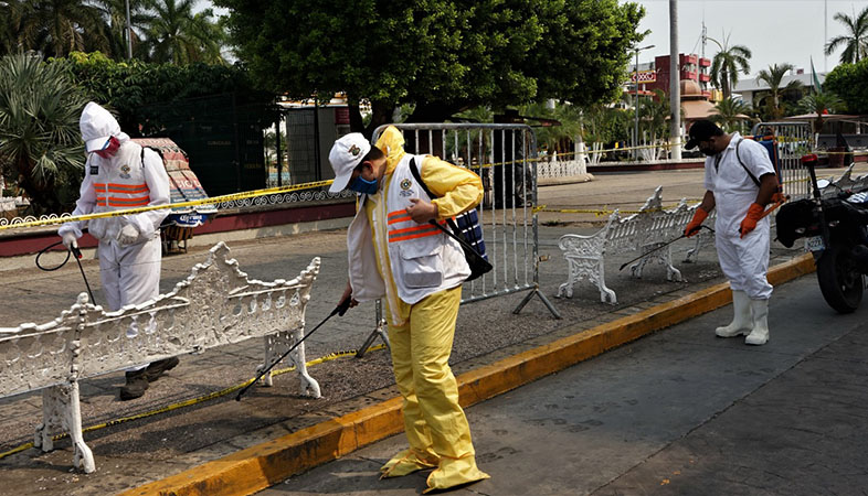 El titular de Protección Civil, Julio César Cueto Tirado, explicó con el personal equipado con bombas aspersoras y apoyados con una pipa, aplicaron una solución sanitizante y clorada para disminuir la probabilidad de contagios, descartando que éstos productos dañen a la población.