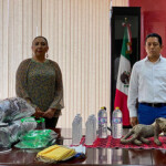 El fiscal general Jorge Luis Llaven Abarca recibió de la presidenta del Voluntariado FGE “Siempre al lado de la gente”, Guadalupe Gómez Casanova, la donación de equipo de bioseguridad que servirá para proteger la salud de peritos, policías y fiscales del Ministerios Públicos que brindan atención a víctimas del delito en este órgano de procuración de justicia.