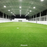 Se realizó un trabajo integral en un espacio de 972 metros cuadrados, con pasto sintético, domo, módulo de sanitarios, caseta de vigilancia, barda perimetral, andadores, graderío, instalación eléctrica, red pluvial, hidráulica, entre otros aditamentos.