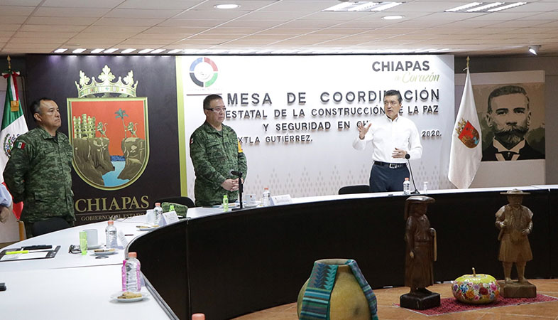 El mandatario subrayó que mediante la Mesa de Seguridad sesionan todas las mañanas, representantes de las instituciones de seguridad, justicia, migración, derechos humanos, programas sociales, entre otras, con el compromiso de garantizar la paz, la tranquilidad y el bienestar de las familias chiapanecas, sobre todo, en estos momentos tan difíciles por la pandemia.