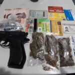 Al ser alcanzado y sometido a revisión, al sujeto identificado como Jeremías “N”, de 29 años de edad, le encontraron en su poder una pistola color negro metálica, con un cargador con 16 balines y dos tanques de gas para la misma; asimismo portaba tres bolsitas de nylon conteniendo hierba verde –marihuana- y tarjetas de crédito con diferentes nombres.