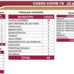 Los casos recientes se registraron en los siguientes municipios: Tuxtla Gutiérrez, 28; San Cristóbal de Las Casas y Tapachula, cuatro cada uno; Mapastepec, Ocozocoautla, Tonalá y Villa Corzo, dos cada uno; y Benemérito de las Américas, Cintalapa, Frontera Hidalgo, Huehuetán y Palenque, un caso cada uno.