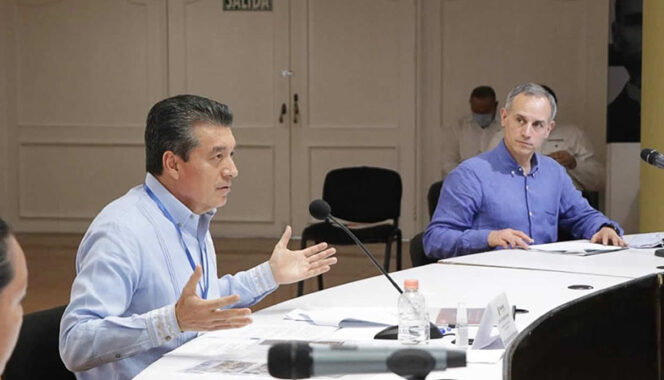 “Tenemos una gran base porque las instituciones federales y estatales trabajamos en suma, lo que también ocurre con los Ayuntamientos. Les exhorto a privilegiar el diálogo antes de realizar desinfección o fumigación para combatir dengue y COVID-19, con el propósito de que no haya ningún problema, así como a caminar sus comunidades y estar muy pendientes del cuidado de su gente, del personal de salud, de la infraestructura e insumos”, dijo a las y los alcaldes.