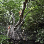 Como medida preventiva y para salvaguardar la seguridad de trabajadores y visitantes se realizaron labores de poda y desrame de un árbol que interrumpía el paso de una sección del Parque Aéreo del ZooMAT.