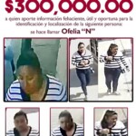 recompensa de 300 mil pesos a la persona que dé información tendiente a encontrar a