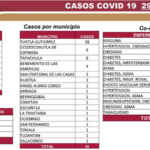 La dependencia estatal detalla que los casos confirmados recientemente se presentaron en los siguientes municipios: Tuxtla Gutiérrez, 18; Ocozocoautla y Tapachula, seis; Benemérito de las Américas, cuatro; San Cristóbal de Las Casas, tres; Huixtla, dos; y Ángel Albino Corzo, Arriaga, Berriozábal, Comitán, Escuintla, La Trinitaria, Ocosingo, San Fernando, Tonalá, Tuzantán y Villa Corzo, un caso cada uno. Se trata de 34 hombres y 16 mujeres.