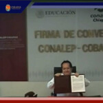 La directora del Colegio de Bachilleres de Chiapas (Cobach), Nancy Leticia Hernández Reyes, y el director general del Colegio Nacional de Educación Profesional Técnica (Conalep), Carlos Aymer Albores Constantino, firmaron un convenio de colaboración con la finalidad de desarrollar programas de capacitación en beneficio de trabajadores y estudiantes.