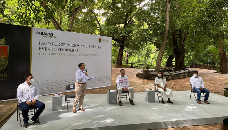 El gobernador Rutilio Escandón Cadenas encabezó la entrega de pagos del Programa “Servicios Ambientales” de la Selva Lacandona a mil 720 comuneros, a quienes reconoció por su labor como guardianes de esta riqueza natural que representa una fortaleza para los ecosistemas, sobre todo porque se aumenta la posibilidad de preservarla a favor de las generaciones por venir.