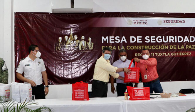 Con la finalidad de reconocer el trabajo de las y los policías, así como contribuir a las acciones de sensibilización para el uso indispensable del cubrebocas, el Gerente General de la Plaza Tuxtla Gutiérrez de las tiendas Oxxo, Marat Salazar González, asistió a la Mesa de Seguridad Región 11 Metropolitana, para donar este material sanitario a presidentes municipales, instituciones y corporaciones que integran esta instancia insterinstitucional de seguridad.