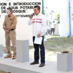 Ambas autoridades arrancaron la funcionalidad del tanque de distribución de agua potable, ubicado en la parte alta de este fraccionamiento.
