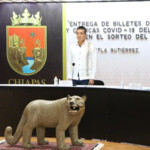 El gobernador Rutilio Escandón Cadenas atestiguó la entrega al sector salud estatal de billetes de lotería para participar en el sorteo del avión presidencial, donde subrayó que esta acción es un aliciente para todas y todos los que pertenecen al Sistema de Salud de Chiapas, quienes con su labor han demostrado profesionalismo, humanismo y voluntad de servir a la población que más lo necesita, sobre todo ante la pandemia de COVID-19.