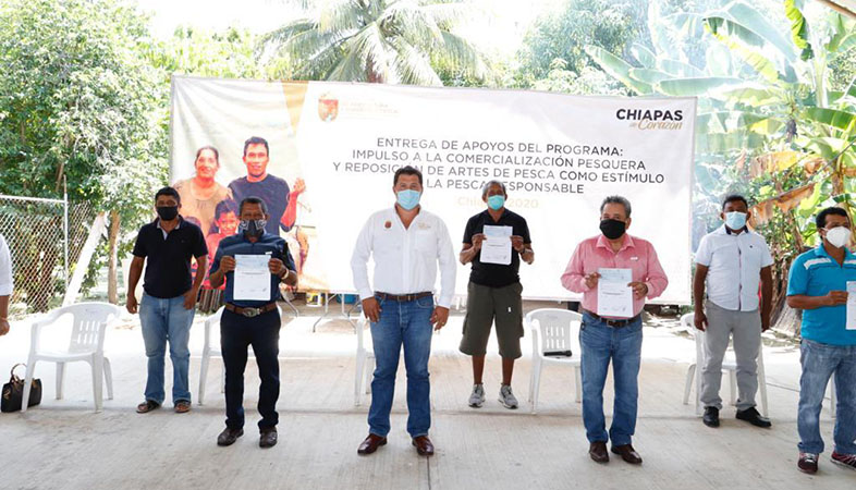 Asimismo, entregó apoyos del programa Reposición de Artes de Pesca como Estímulo a la Pesca Responsable, beneficiando a 40 cooperativas de Pijijiapan, Arriaga, Tonalá, Mapastepec y Acapetahua.