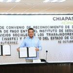 Durante la firma del Convenio de Reconocimiento de Deuda y Forma de Pago entre el Instituto de Seguridad y Servicios Sociales de los Trabajadores del Estado (Issste) y el Gobierno de Chiapas, el gobernador Rutilio Escandón Cadenas resaltó que este acto es trascendental porque además de dignificar a las y los trabajadores de la salud, da cumplimiento a sus derechos constitucionales de acceder a una vivienda, atención médica, créditos y todo lo que se derive a favor del bien común.