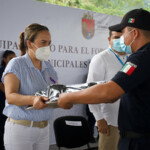Esta entrega de equipamiento para el fortalecimiento y dignificación de las y los policías municipales en la Región Norte, fue encabezado por Jorge Luis Llaven Abarca, fiscal general del Estado, y Sergio Alejandro Aguilar Rivera, secretario ejecutivo del Sistema Estatal de Seguridad Pública, y asistieron la diputada Dulce María Rodríguez Ovando, así como representantes de la Guardia Nacional, y del Centro Estatal de Control y Confianza Certificado.