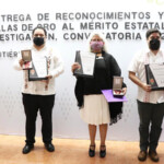 Las y los galardonados de este año fueron: doctor Carlos Alonso Meza Avendaño, de la Universidad de Ciencias y Artes de Chiapas (Unicach), quien obtuvo el Reconocimiento al Mérito Juvenil en Investigación; doctor Francisco Guevara Hernández, de la Universidad Autónoma de Chiapas (Unach), el Mérito Estatal de Investigación Científica; y el Cuerpo Académico de Tecnología Educativa y Sociedad del conocimiento del Centro Regional de Formación Docente e Investigación Educativa (Cresur) obtuvo el Mérito Estatal en Desarrollo Tecnológico e Innovación.