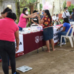 En la cancha de usos múltiples de esta comunidad ubicada en la zona alta de Tapachula, las mujeres y sus familias tuvieron acceso a los servicios integrales de salud como vacunación, optometría, consulta externa, cortes de cabello, además de vacunación antirrábica.