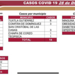 Los casos recientes se registraron en los siguientes municipios: Tuxtla Gutiérrez, seis; Comitán y San Cristóbal de Las Casas, tres cada uno; y Chiapa de Corzo y Teopisca, un caso cada uno.