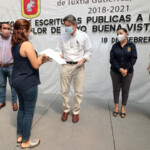 En este importante acto para las familias beneficiadas estuvieron presentes el Delegado del Registro Público de la Propiedad y de Comercio, Leonardo Daniel López Gálvez, la síndica Karla Burguete Torrestiana y los notarios públicos David Sol Corzo, Ovidio Cortazar Ramos y Estela Esponda Carrillo.