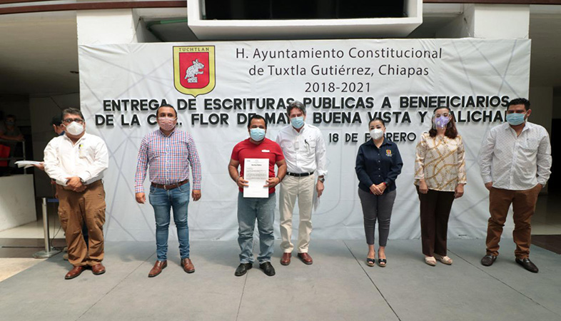 En este sentido, Carlos Morales Vázquez agradeció el apoyo del gobierno que preside Rutilio Escandón Cadenas, quien ha instruido a las áreas de Catastro y del Registro Público de la Propiedad y de Comercio una estrecha coordinación con el gobierno municipal, con el objetivo de seguir avanzando en este tema y poder dar certeza jurídica al patrimonio de más familias.